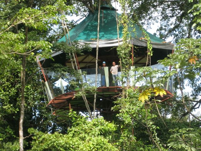 Si dorme letteralmente abbarbicati intorno ad un albero in una struttura in legno costruita intorno al tronco.